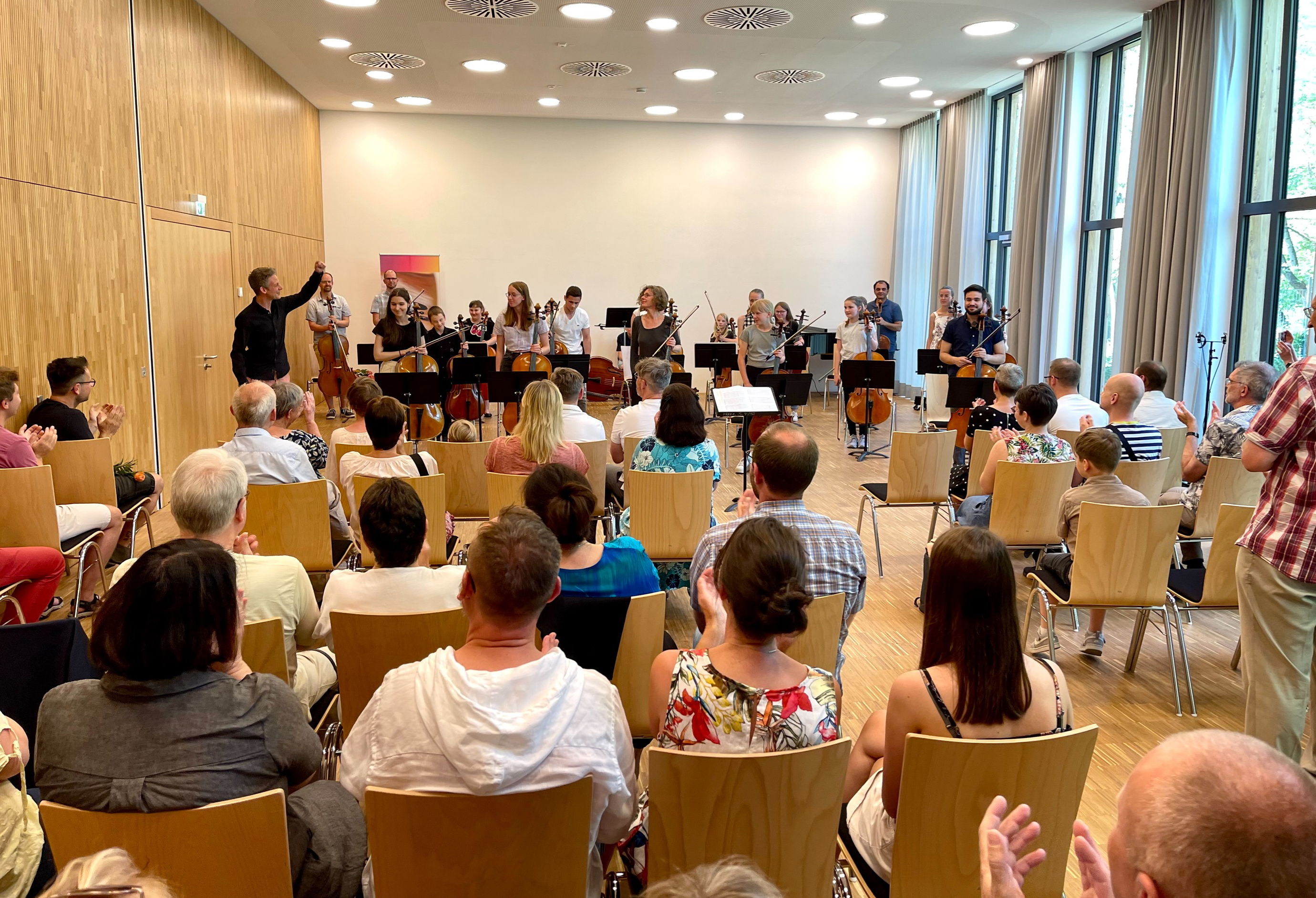 Abschlusspräsentation des Cello-Orchester-Workshops unter der Leitung von Dirigent Michael Falk in Zusammenarbeit mit projects4cellos (Unterstützung und Registerproben) innerhalb der '7. Hofer Cellotage', eine Veranstaltung der Hofer Symphoniker in Kooperation mit projects4cellos und dem Tonkünstlerverband Hochfranken e.V.