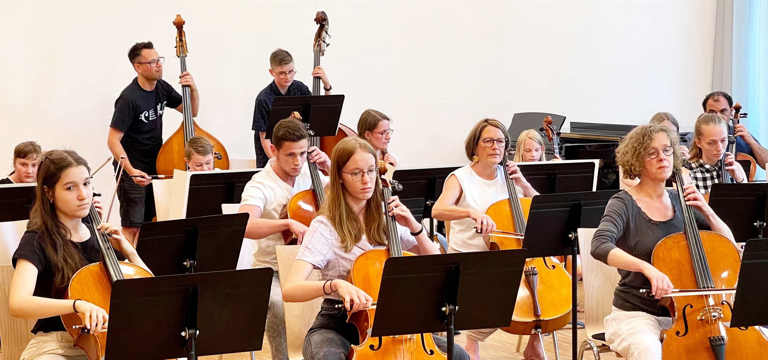 Cello-Orchester-Workshop (2. Teil) unter der Leitung von Dirigent Michael Falk in Zusammenarbeit mit projects4cellos (Unterstützung und Registerproben) innerhalb der '7. Hofer Cellotage', eine Veranstaltung der Hofer Symphoniker in Kooperation mit projects4cellos und dem Tonkünstlerverband Hochfranken e.V.
